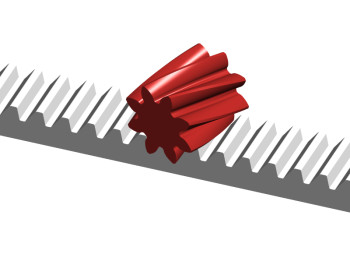在汽车上,从方向盘到车轮的传动,通常是用齿轮齿条的驱动形式来实现的。在标准工业齿轮齿条驱动中,齿轮轴线和齿条之间的夹角是90°。然而,根据汽车中的安装条件,齿轮齿条间的轴交角经常必须进行调整。这就导致出现了斜齿轮和无限齿数的齿条交错啮合。