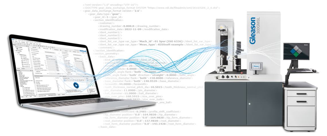 VDI 2610 指令基于 XML 为齿轮数据定义了灵活的 GDE 数据格式 (Gear data exchange)。该数据格式使齿轮数据能够以电子方式保证从设计到生产、再到质量测试和质量进行传递和传输。