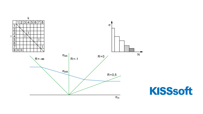 通过将载荷谱换算至平均应力 Sm = 0 和应力比 R = -1,可以在验证中考虑到不同的应力比对载荷的影响。为此,为载荷谱中的每个载荷工况计算振幅系数 KAK 。在这种情况下,假定过载情况 2,即恒定应力比。
